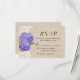 Rustic Lila Hydrangea Snöre & Burlap Bröllop OSA/responskort.