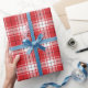 Farmhouse vintage land rustic helgdag presenter som omsluter papper. Traditionell, klassisk fladtan mönster som består av rött, vitt och svart korrosat, vågrät och lodrät. Tartan, även känd som skotsk eller traditionell plaid, är perfekt för ett klassiskt utseende och stil. Underbar till jul och vinter-julhelgen.