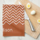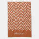 Rusty Red Terracotta Squiggly Chevron With Name Kökshandduk
