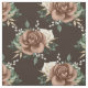 Den här designen visar rostiga blommor av ro-färgad med löv på en mörk brun bakgrund.