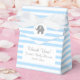 Cute grått-elefant för babyduschfest. Pastellblått och vitt rand med djurparksikon. Anpassningsbar tack för att du kom med meddelandet. Cute linjer skriver ut med elegantens skripttypografi och vidhäftande kalv. Anpassadets bakgrund färg för pojke eller flicka Könsneutral design för babyduschen party firande. Roligt party förser nyfödd bebis flicka/nyfött barn. Tema Jungle/safari. Tält-formens favoritruta.