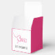 Klassisk, fyrkantig presentlåda för Rosa med anpassade. Frontlådan har "Baked" i elegant som matchar rosa design med "Just for NAMN" under vilken den ska ändras till namn på den person som presenten är avsedd för. På baksidan finns budskapet "Från NAMN" som bör ändras eller strykas till kostym - och överst är elegantens vita prydnadshjärta.