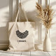 Representerar nosorious RBG med en Ruth Bader Ginsburgs namnteckning kollar och "I dissent" citat till väskan. Collar och bokstäver är handdragna för att lägga lite stollig till era framsteg för de mänskliga högerna.