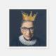 Ruth Bader Ginsburg med guld krona och mörk blått bakgrund. Den här teckningen inspireras av den ikoniska Ruth som banade väg för kvinnor i amerikansk rättspraxis.