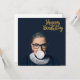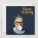 Ruth Bader Ginsburg blåser en vit bubbelgummi. grattis på födelsedagen i guld. Den här teckningen inspireras av den ikoniska Ruth som banade väg för kvinnor i amerikansk rättspraxis.