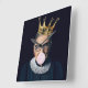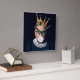 Ruth Bader Ginsburg med ett guld krona som blåser en rosa gummi