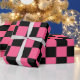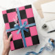 Abstrakt digital konst av shock rosa och svarten kvadrerar i ett rutigt bildande.