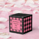 Klassisk rosa och svart buffelrutig presentlåda. Text på båda sidor av lådan är anpassningsbar. Om du använder knappen/verktyget 'Redigera design', kan du även lägga till egna bilder/fotografier. Andra färgval tillgängliga.