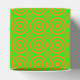 Orange och NEON GRÖNT- SQUARE FAVOR BOXES- Circular ringar av orange vilar på en baksida av grönten. Den runda bullseye-ringarna är en bakgrundsutskrift i bakgrunden. Den här designen är tillgänglig i färg, vissa med fast ringar och andra med texturerat avfasat ringar. Denna utformning är lämplig för använda året runt. Välj en tillgänglig storlek av Zazzles Pappra Tallrikar