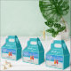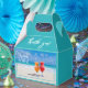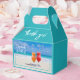 Beach bröllopsaffischer med handtag. Tropisk blå färg med en bild på framsidan av två, frostiskt kackerskor sitta på sanden. Namn från bruden och brudgummen kan läggas till på framsidan med "tack" på lådan. Fyll med små gåvor till gäster vid en möhippa, förlovningsfest eller bröllopsmottagning.