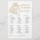 Behålla roligten med den här guld Perfekt Pear "What's in Your Purse" möhippa match. Den här lekande aktiviteten har elegantens pärongrafik och Franskens land-detaljer och gäster som kontrollerar säckar för vardagsartiklar och oväntade artiklar för att tjäna poäng. Anpassa med bridens namn för en tankfull beröring. Koordinerar fullt Pear möhippa-samlingen, inklusive inbjudningar, décor och andra matchande spel.