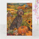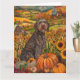 Fira höstens skönhet med denna livfulla målning av en hund som sitter bredvid en riklig Thanksgiving-skörd. De rika höstfärgerna av pumpor, solrosor och rustik gårdslandskapsscen skapade en varm och inbjudande atmosfär, perfekt för alla hundälskares säsongsdekor.