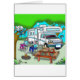 En koppla ihop sitter framme av deras RV som dricker tittar fåglar för vin som stunder sitter framme av en liten RV i ett träd dricker också, vin.