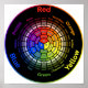 This RYB (Red, Yellow, Blue) color wheel has names, RGB hex codes, mixes (shades/tones/tints), temperatures (warm/cold), and orders (primary/secondary).
