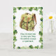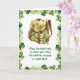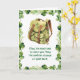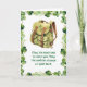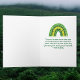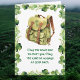 Detta St. Patrick's Day-kort är designat med en illustration av en vintage-stil ryggsäck och en klassisk irländsk välsignelse. Texten på framsidan lyder "Må vägen resa sig för att möta dig. Må vinden alltid vara vid din rygg." Insidan har en grön och gul randig regnbåge. Texten på insidan lyder: " Må solen lysa varmt på ditt ansikte och regnet falla mjukt på dina fält. Och tills vi möts igen, må Gud hålla dig i sin hand. -- Irländsk välsignelse Detta vackra kort kan berätta för en nära och kära att du bryr dig om dem och tänker på dem på St. Patrick's Day eller vilken dag som helst.
