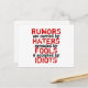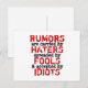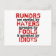 Citat: Rykten sprids av hatare, (vidare sprids) av dårar och accepteras av idioter. (det felstavat ordet är medvetet valt för konstnärligt uttryck). Du har möjlighet att rätta.