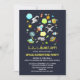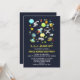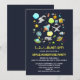 En födelsedagsinbjudan med ett sött och färgglatt mönster med alla möjliga rymdtemaelement. Bilderna inkluderar astronauter som flyter runt i sina vita rymddräkter. Stjärnor och planeter och coola små rymdskepp, rymdfarkoster och satelliter. Rolig och galen design.