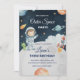 Ge sig av på ett roligt äventyr med denna söta astronaut födelsedagsinbjudan! Med raketer, planeter och ett lekfullt rymdtema är det perfekt för barnens rymdpartyn. Anpassa enkelt med ditt barns namn och festdetaljer.
