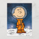 Denna Peanuts-konst firar 50-årsjubileet av 1969 års Apollo 10 omloppsbana runt månen och Apollo 11:s månlandning. Denna design visar Charlie Brown i sin orange rymddräkt.