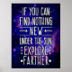 Bilden av coola rymden på denna vackra poster kommer från NASA/CXC /JPL-Caltech/STScI och tas under "vinge" i Small Magellanic Cloud. Den har blivit djupare blå. Den ursprungliga inspirerande orden för rymdäventyrare säger: "Om du inte hittar något nytt under sol, utforska ännu mer." Enligt NASA är Small Magellanic Cloud, SMC, en liten galaxi på omkring 200 000 ljusår som fungerar som vår egen Milky Way spiral galaxy. Den här bilden visar en nebuli med avlägsna galaxer bakom sig. Färg är till största delen lila och blues. Den här poster är perfektens motivation för rymdbogen och alla som hittar skönhet i vårt universum och drömmar om att utforska stjärnorna.