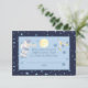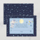 Blårafflar i rymden med blå stjärnor på midnattsblå bakgrund. Varje kort är ljusblått med en rymdfarkost, rymdfarkost och blek gult måne. Omsluta i kuvertet med motsvarande inbjudningar.