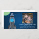 Fira pojkens födelsedag eller speciella tillställningar med den här coolans rymdraket i rymden. Mörk blått himlar med stjärnor och färgade planeter, och ett silver-raketjakt genom himlar. Färgstark och ljusstark. All design Copyright © 2012 www.CustomInvitesOnline.com