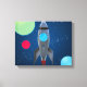 Mörk natt rymden himlar med färgstarka och ljusa planeter och vita stjärnor, med en frakt av raketen silver som flyger genom himlar. Underbar för ett litet rum för killen som kärlek rymmer och reser. All design Copyright © 2012 www.CuteComfy.com