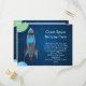 Fira pojkens födelsedag eller speciella tillställningar med den här coolans rymdraket i rymden. Mörk blått himlar med stjärnor och färgade planeter, och ett silver-raketjakt genom himlar. Färgstark och ljusstark. All design Copyright © 2012 www.CustomInvitesOnline.com