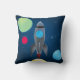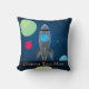Mörk natt rymden himlar med färgstarka och ljusa planeter och vita stjärnor, med en frakt av raketen silver som flyger genom himlar. Underbar för ett litet rum för killen som kärlek rymmer och reser. All design Copyright © 2012 www.CuteComfy.com