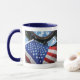 Foto av den amerikanska Flagga med jord i bakgrunden taget i kupolet Internationell Space Station den 14 juni 2015.