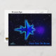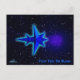 En enkel, blåtonad 3D-fraktalbild som liknar ett stiliserat rymdskepp som läggs ovanpå en stjärnbakgrund. Concentric ringar (gravitationen vinkar?) kommer från rymdfarkosten till det till synes tomma utrymmesvakuum. En ljusblå aura omger rymdfarkosten, vilket kanske leder till snabbare än ljusare resor. Lägg till din egen text.