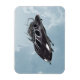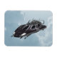 3D digital återgivning av ett mörk rymdskepp på blå himmel-bakgrunden