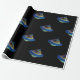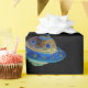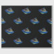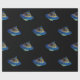 Blå rymdskepp med papper svart bakgrundsförpackning