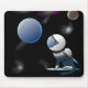 Rymdkattastronaut som flyger i en futuristiska sci-fi-illustration.