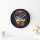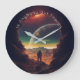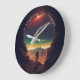 Cool väggklocka med en astronaut som tittar ut från en mörk grotta. Robust landskap med planeter, stjärnor Kvasarer. "Är någon därute?"