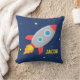 Lägg till en känsla av äventyr för ett barnrum, särskilt pojkrum med denna söta och färgglada kudde som har ett rymdskepp som skjuter ut i en galax av stjärnor över den mörkblå bakgrunden. Ett roligt stycke med utrymme för namn-personalisering för barn. Perfekt för den lilla astronauten.