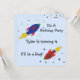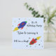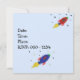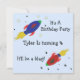 Ett roligt sätt att få pojkarna att bli upphetsade med denna coola rymdskepps födelsedagsinbjudan. Blå och röda rymdskepp som sprängs av i yttre rymden. En mjuk blå bakgrund med stjärnfall. Anpassa med all din födelsedagsinformation som önskas.