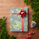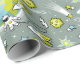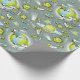 En grå, grön och gul rymdresenärsfödelsedagspresentpapper för barn, designad med planeter, kometer och astronauter