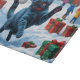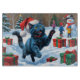 En grym rysk Blue Cat springa elegant genom snövinteckan med en röd julhatt. Denna charmerande utformning belyser rasens blåblåa grått-jacka, den slående grönt ögon och varsam personlighet samtidigt som man fångar julhelgens värme och glädje. En härlig vinter-fullt av festlig cheer.