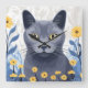 Ryska Blue Cat Gula blommor Fyrkantig Klocka
