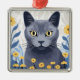 Ryska Blue Cat Gula blommor Julgransprydnad Metall