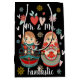 Anpassade namn eller: Mr & Mrs" och efternamn eller ditt personliga budskap, och ett Matryoshka-par i aqua blue, teal, red on black, han är i blått och hon är i rosa med hjärtan blommor och snöflingor.