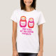 Roligt grafiskt ljust ryskt bygga bo, två bygga bo dockor i rosa och rött med blont hår. T-skjorta för Babushka stiltext. Läser precis något liknande min storasyster Natalya eller kan personifieras med din ord och eller namn. Grafik och design av Sarah Trett.