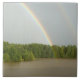 COPYRIGHT Cindy Miller Hopkins / DanitaDelimont.com| EU26 CMI1057.jpg| Ryssland, typiska flodvyer mellan Goritzy & Kizhi Island. Vitt Sjö, dubblans regnbåge över skogen.
