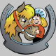 En trevlig design för någon som gillar ridning. Detta har en flicka och henne hästraminsida en hästsko. Flickan och hästen göras i lite en tecknadstil. Denna ryttare- och hästdesign ser underbar på denna flickahoodie. Perfekt för dig eller som en gåva