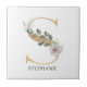 Brev S monogram blommigt. Brev S i guldbrun struktur accentuerad med grönt vattenfärgade löv, blommor och blommar från guld. Personlig med namn i matchande teckensnitt.