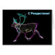 En skarp, nylik utgivning av ett karibou (Rangifer tarandus), även kallat renar. Kyrillisk text med texten "S Rozhdestvom" (С Р о с ж öppningsdatum - en rysk jul hälsning) visas i blått och vitt.