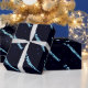 Texten "S Rozhdestvom" (ryska: God jul) visas i blått och vitt på en stjärnfältsbakgrund.