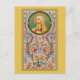 Bildkredit (JMAS 08): Gammal bild av St. Matteus aposteln från ett andaktsblad från slutet av 1800-talet i kromolitografi med förgyllda accenter, ursprungligen publicerad av Josef Müller, konstförlag, München, Tyskland, från designerns privata samling av religiösa efemera. Bilden är en av tolv i förlagets Apostelserie (nr 12155). + Pungen med mynt i den nedre högra delen av kransen runt St. Matteus porträtt anspelar på hans tidigare yrke som taxinär, som han övergav för att följa Jesu kallelse att bli apostel. Både ymnighetshorn och bruna kaniner är symboler för överflöd och god lycka, särskilt i penningfrågor. + St. Matteus är alla aspekter av penninghanterings skyddshelgon. + Högtid: 21 september + Den frodiga blomsterdekorationen härrör från miniatyrer, det vill säga de små illustrationer som användes för att dekorera antika eller medeltida illuminerade manuskript, i Vatikanbiblioteket. + Föredrar du en annan kantfärg