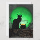 En silhuett av Théophile Steinlens svarta katt för Le Chatta Noir-klubben i en modern miljö för St. Patrick's Day, som visar katten med grönt öga, en grönt fullt, en vinkla med schampor, och en gryta av guld.